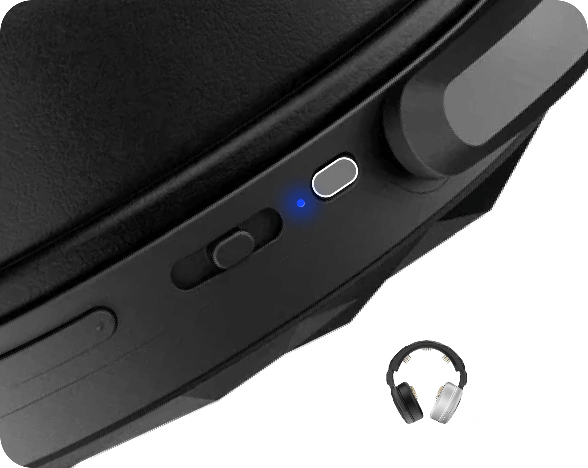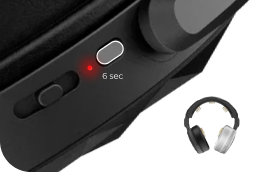 When turning on/off, the indicator on the right headphone is quickly flashing red 3 times