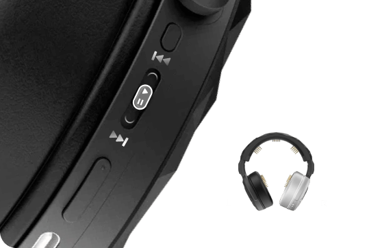 You have a special slider button to switch tracks. Press it once to play/pause a track, and slide it forwards or backwards to switch to the next or previous track