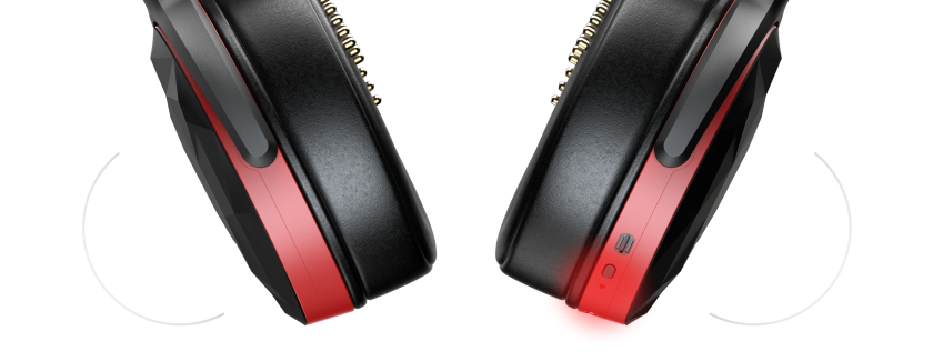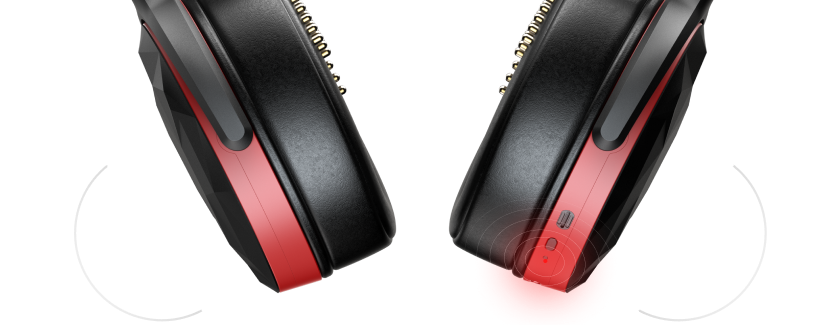 When turning on/off, the indicator on the right headphone is quickly flashing red 3 times