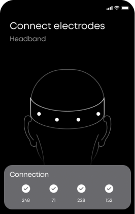n case it does not connect, adjust the headband on your head and make sure electrodes can go through the hair and touch the scalp.