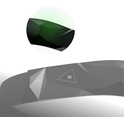 Press the button and turn the headband on. The indicator will be slowly flashing green
